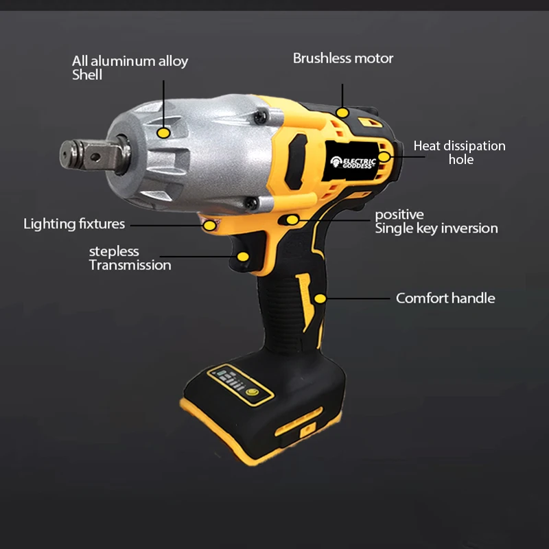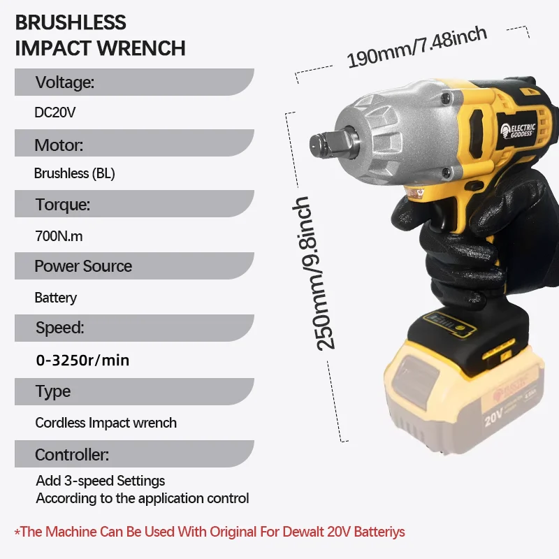 (Without battery)Electric Goddess 700N.M Torque Wrench Brushless Rechargeable Wrench Heavy Duty Key impact Battery Repair Power Tool For Dewalt 20V Battery