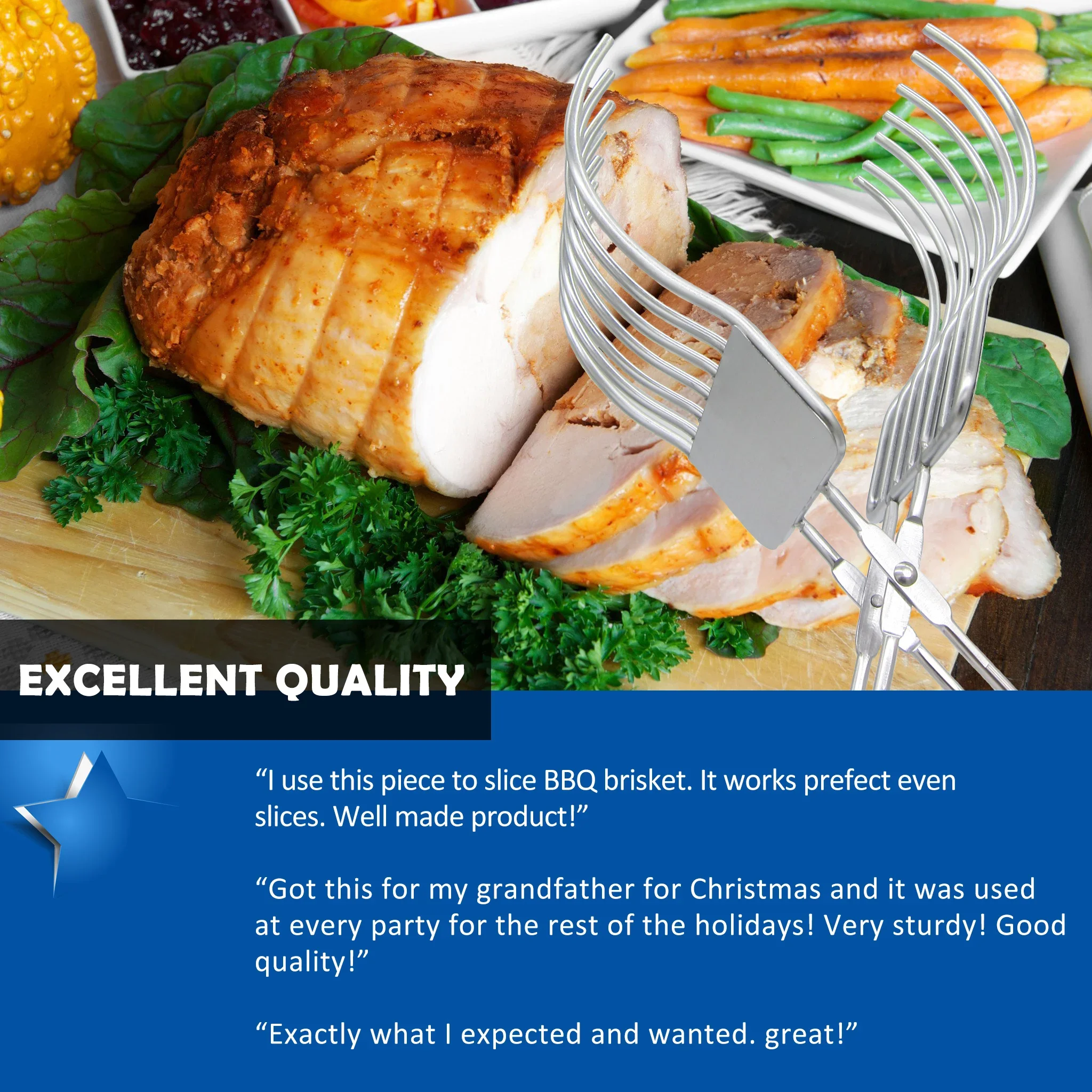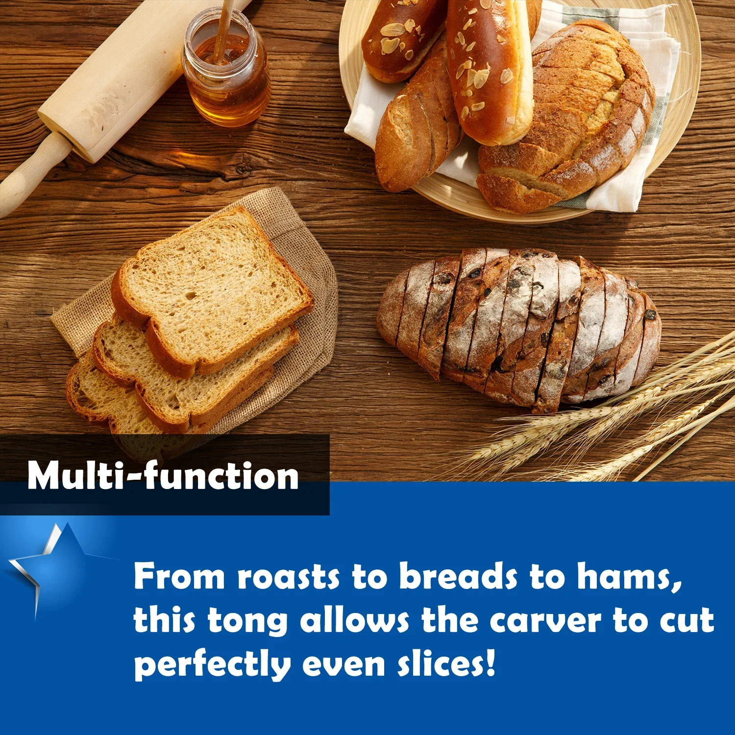 Make even slices from roasts, hams to breads, vegetables and fruits, this stianless steel tong allows the carver to cut perfectly even slices